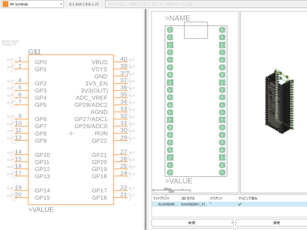 シンボル、フットプリント、パッケージ(なくてもOK)がそろったらコンポーネントに取り込んで紐づけを行います。